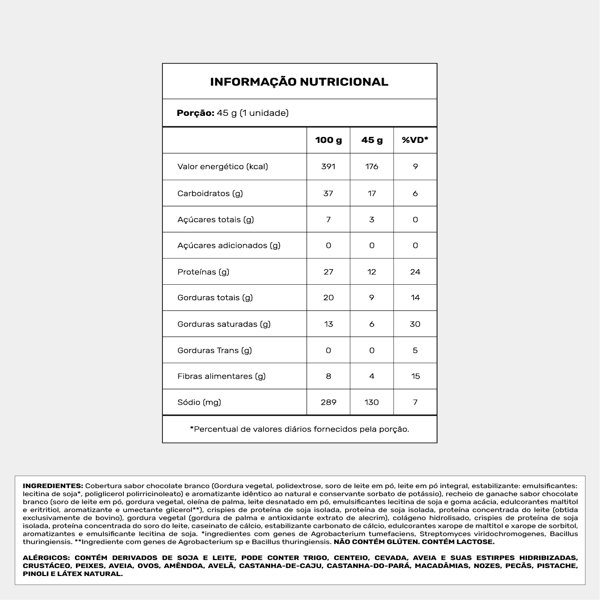 Essa barrinha é a escolha perfeita para quem busca sabor refinado e proteína de qualidade em um lanche prático.
