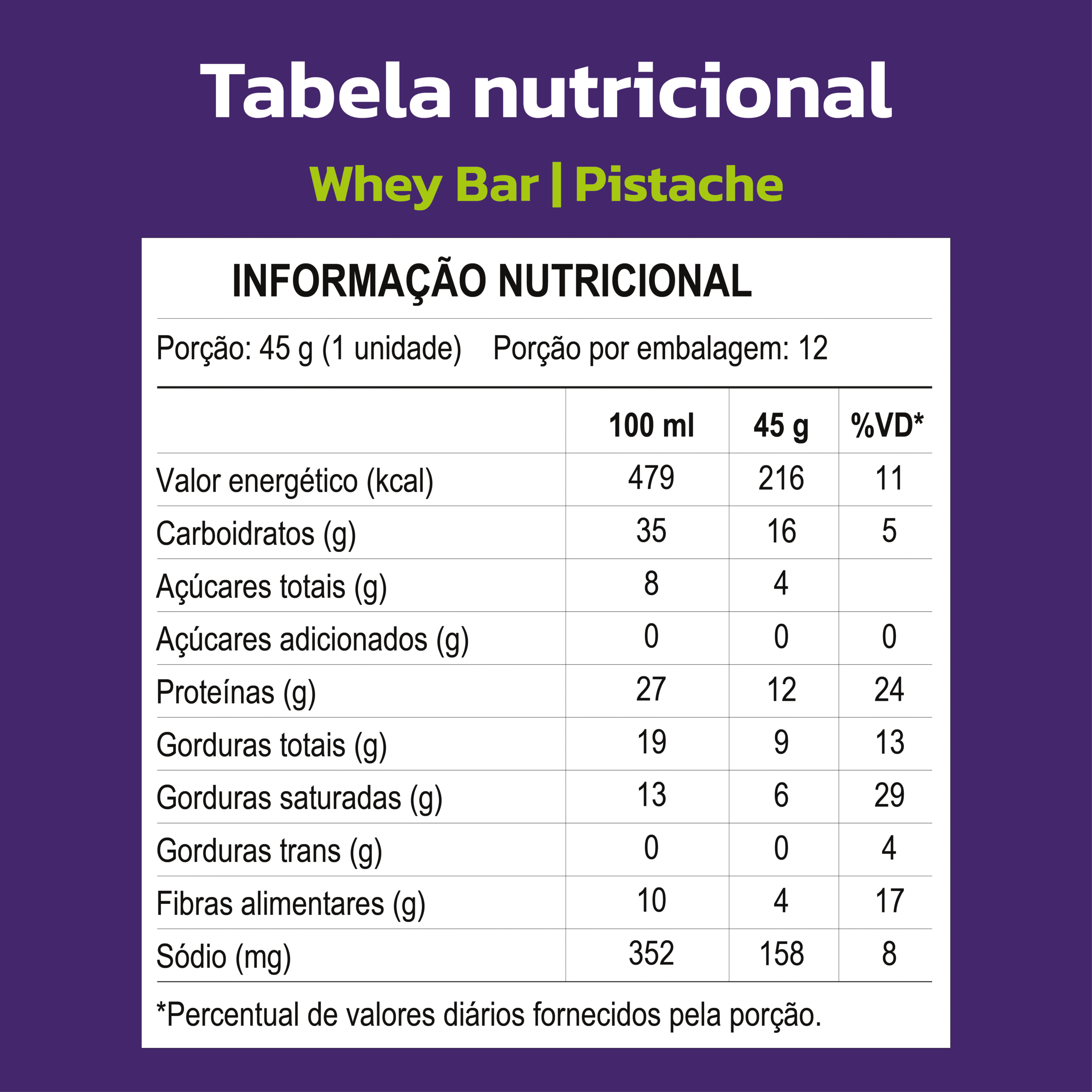 Formulada com ingredientes premium, a Whey Bar Pistache oferece proteína e nutrientes essenciais, garantindo sabor e nutrição sem comprometer a dieta.