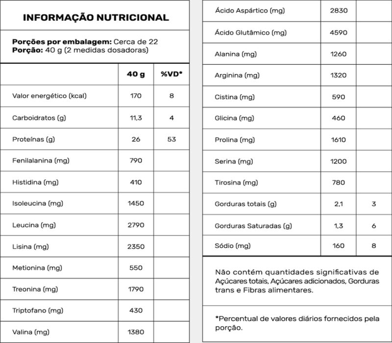 Dissolver 40g (aprox. 1 dosador) em 200ml de água, leite ou bebida vegetal. Consumir preferencialmente após o treino ou conforme orientação médica.